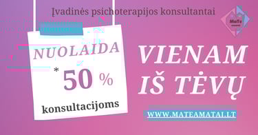 * taikoma nuolaida pirmai konsultacijai (kaina - 38 eur. 19 eur).